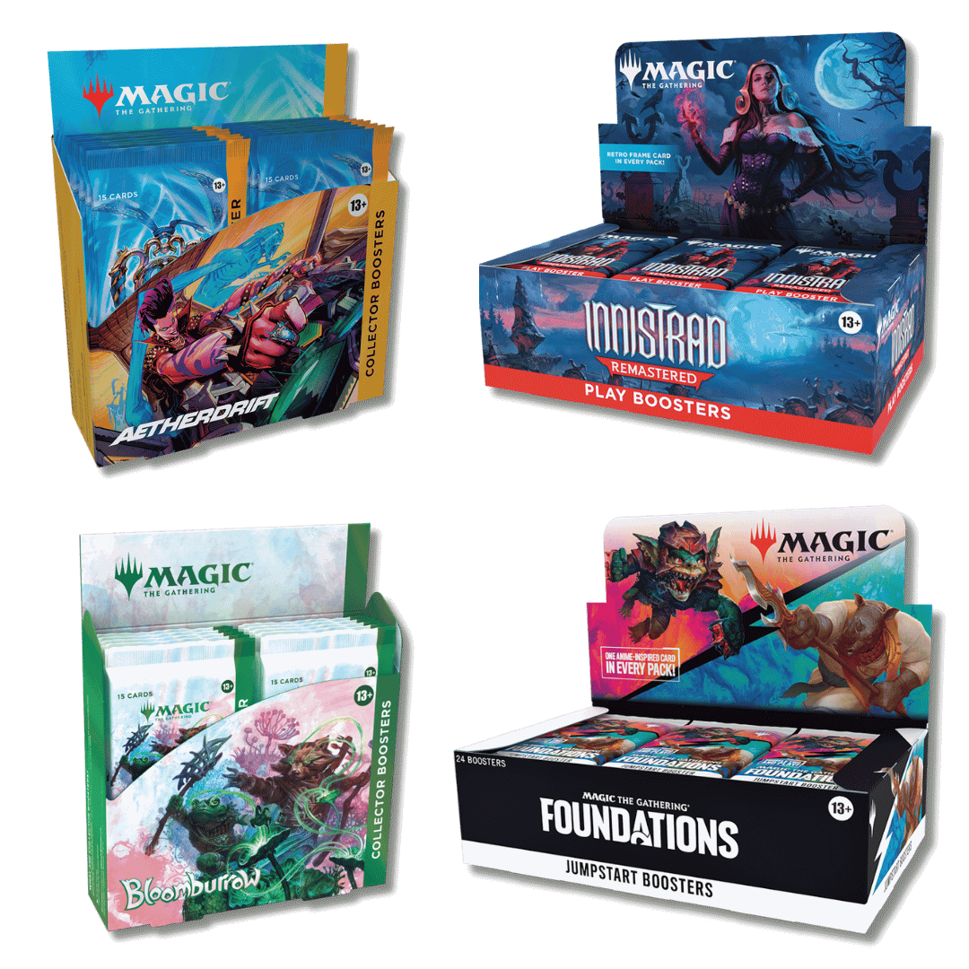 View our range of old and new booster packs, starter packs and booster boxes from the long and eventful history of Magic the Gathering.