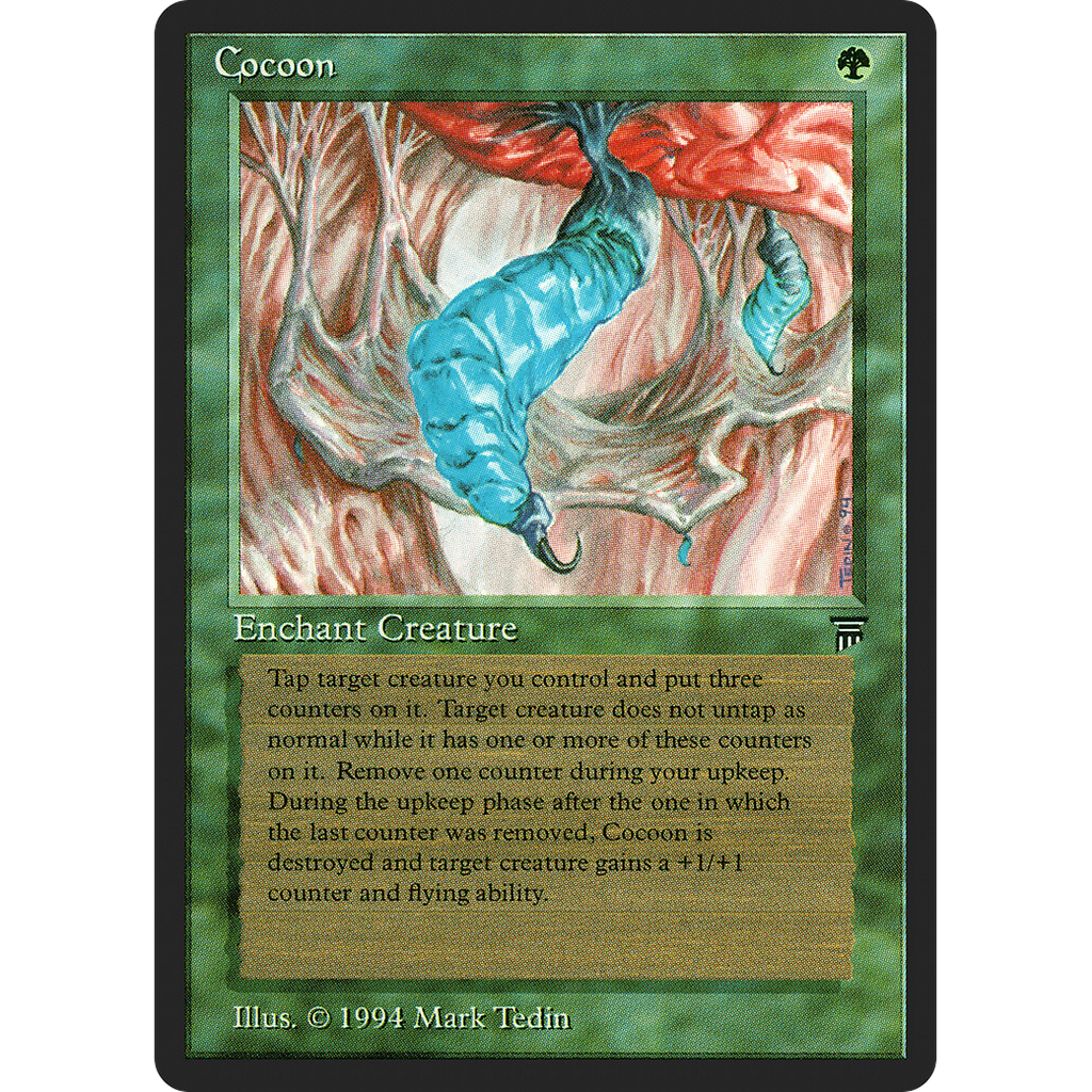 At the beginning of your upkeep, remove a pupa counter from Cocoon. If you can't, sacrifice it, put a +1/+1 counter on enchanted creature, and that creature gains flying.