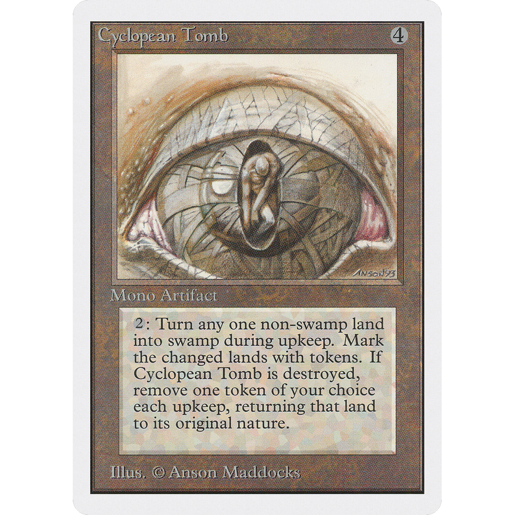 When Cyclopean Tomb is put into a graveyard from the battlefield, at the beginning of each of your upkeeps for the rest of the game, remove all mire counters from a land that a mire counter was put onto with Cyclopean Tomb but that a mire counter has not been removed from with Cyclopean Tomb.
