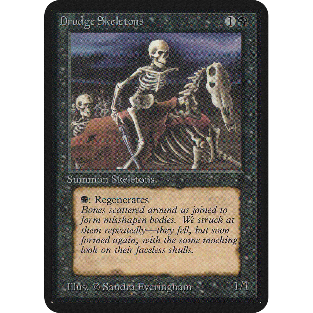 Card Text: Regenerate Drudge Skeletons. (The next time this creature would be destroyed this turn, it isn't. Instead tap it, remove all damage from it, and remove it from combat.)