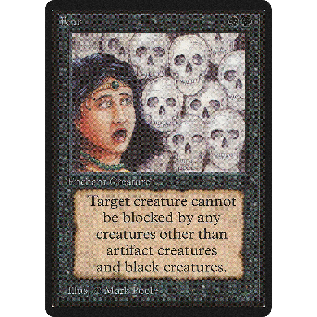 Enchanted creature has fear. (It can't be blocked except by artifact creatures and/or black creatures.)