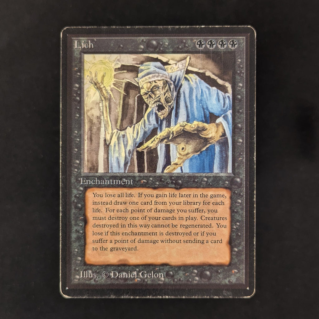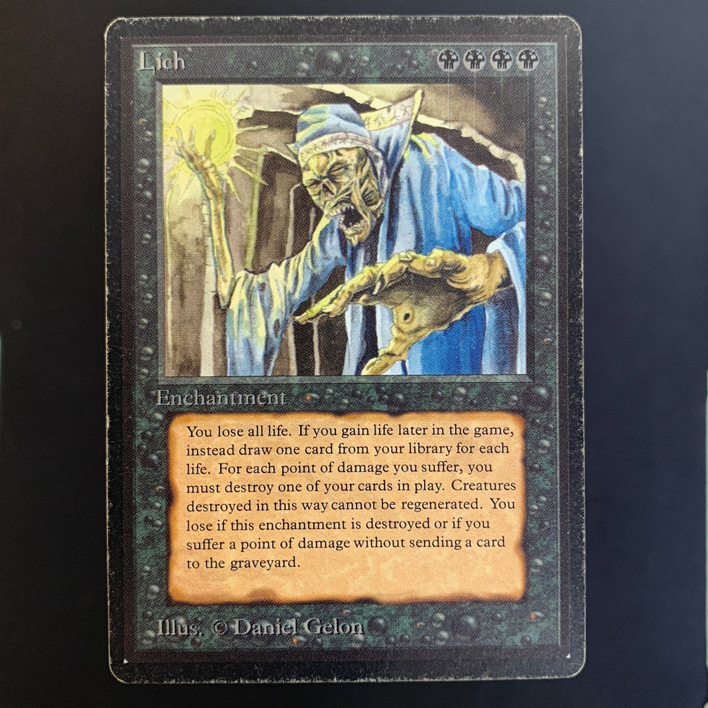 When Lich is put into a graveyard from the battlefield, you lose the game.