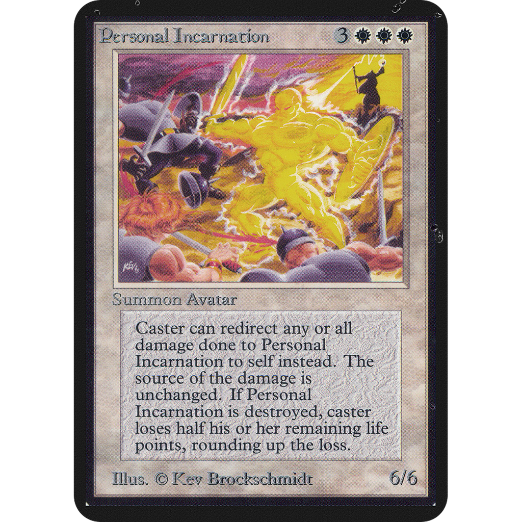 Card Text: The next 1 damage that would be dealt to Personal Incarnation this turn is dealt to its owner instead. Only Personal Incarnation's owner may activate this ability.