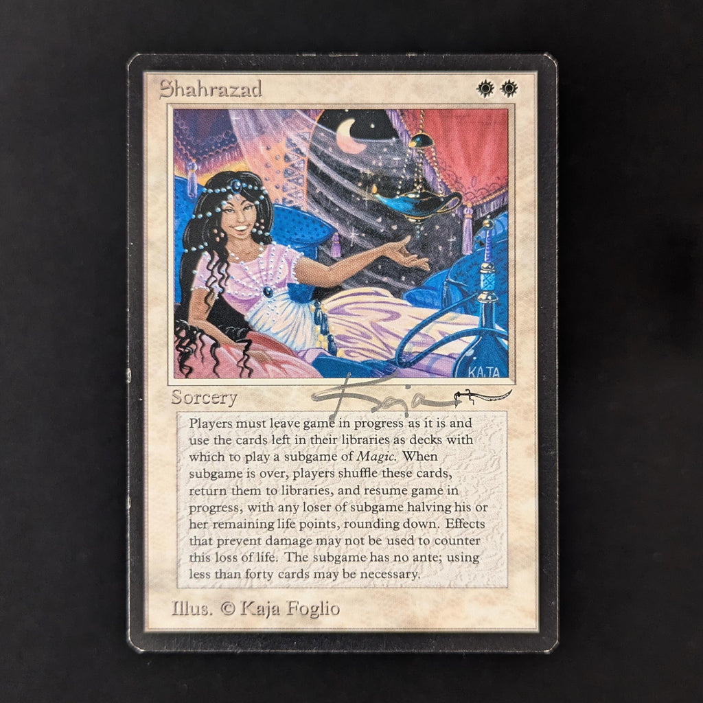 Players play a Magic subgame, using their libraries as their decks. Each player who doesn't win the subgame loses half their life, rounded up.