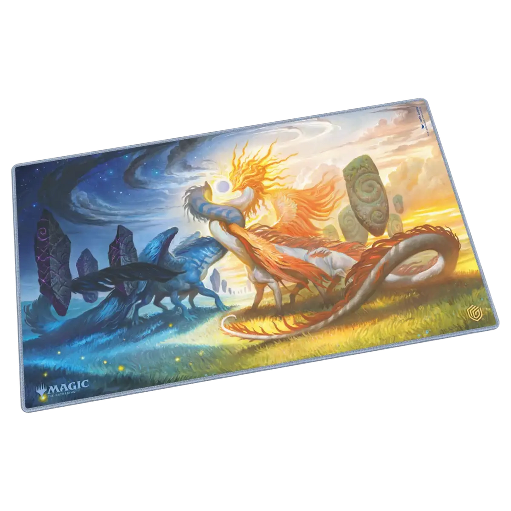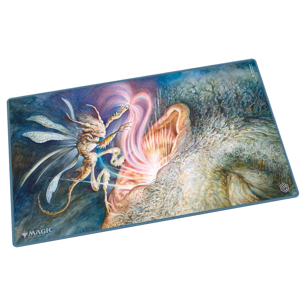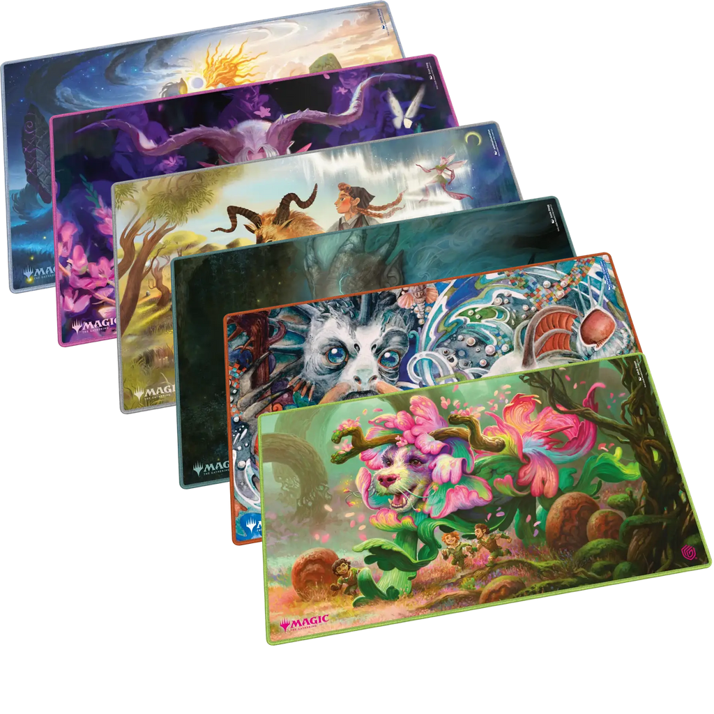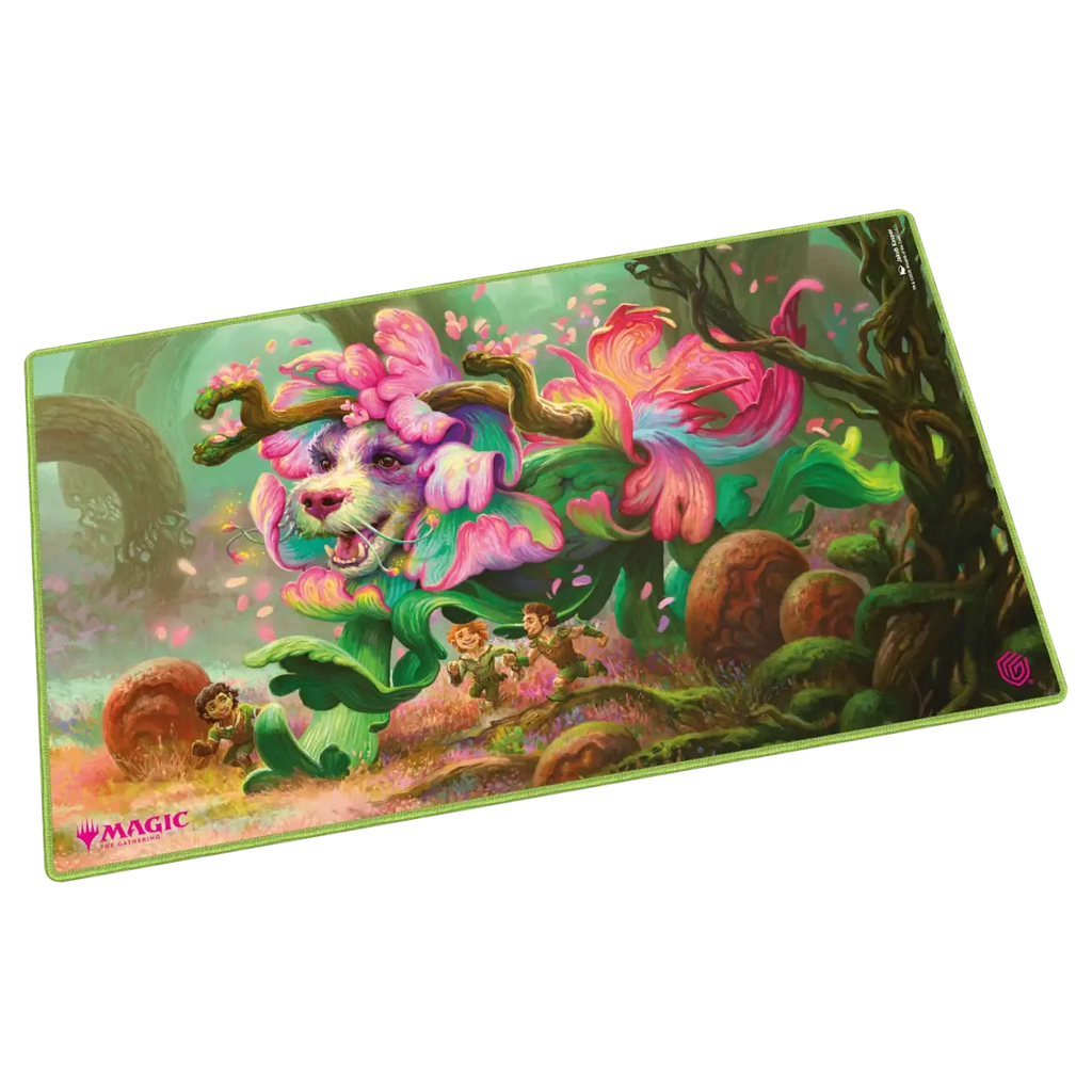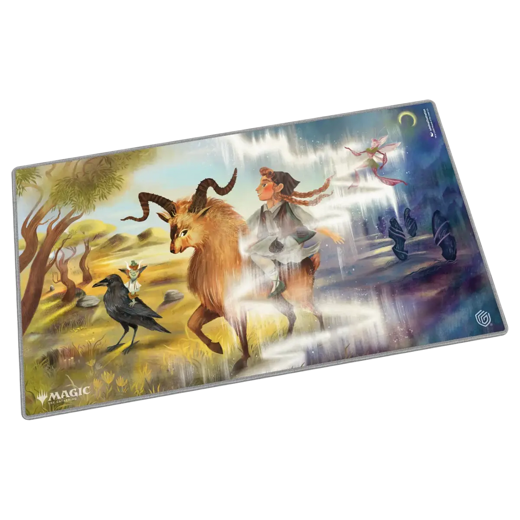 Ultimate Guard's Play-Mat Standard, featuring officially licensed artwork from Magic: The Gathering's "Lorwyn Eclipsed" set, is a high-quality, 61 x 35 cm MTG playmat that enhances the gaming experience and protects MTG cards, sleeves, and accessories from scratches, wear, and dirt. The 2 mm thick, soft-cushioned playmat is made from natural rubber and features Ultimate Guard's trusted anti-slip underside and a high-quality, soft fabric surface. The gaming mat's stitched edges prevent fraying and ensure long-lasting durability.