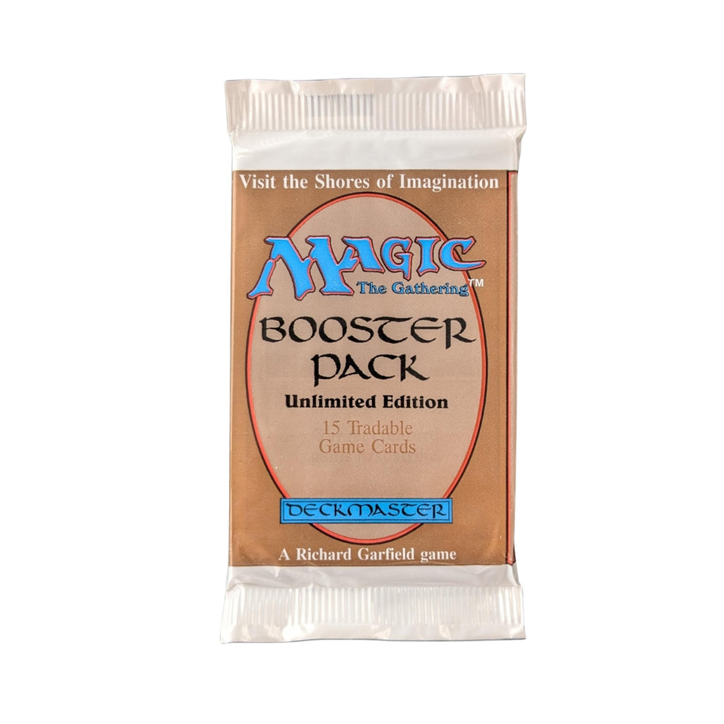 Step back into the earliest days of Magic: The Gathering with an Unlimited Booster Pack. Released in 1993, Unlimited Edition was the second-ever core set printed for Magic and played a crucial role in bringing the game to a wider audience following the extremely limited Alpha and Beta print runs.